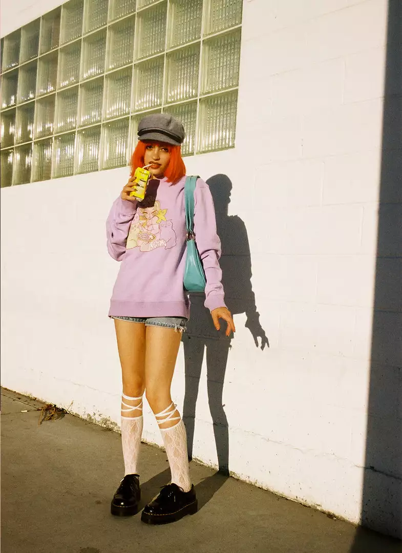 This purple crew neck sweatshirt features original Valfré artwork and printing on the sleeves.
