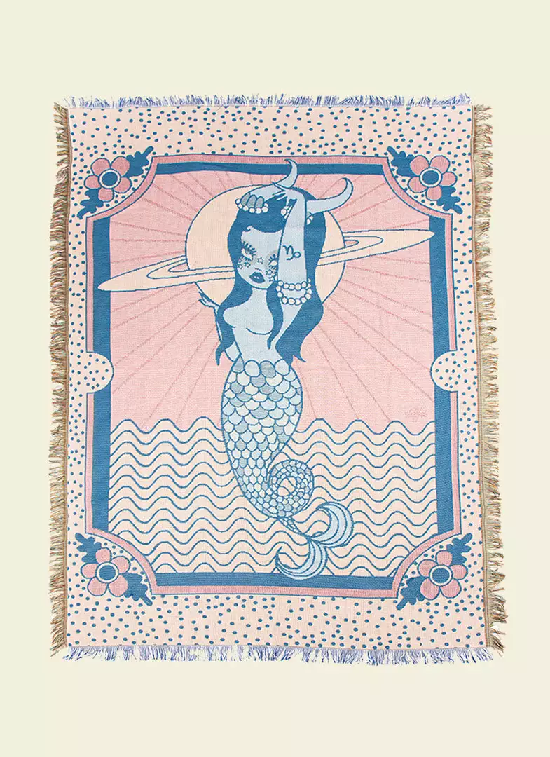 This large woven blanket features original Valfré Capricorn artwork. Drape it across your bed/couch, hang it in your living space, or bring it on a picnic.