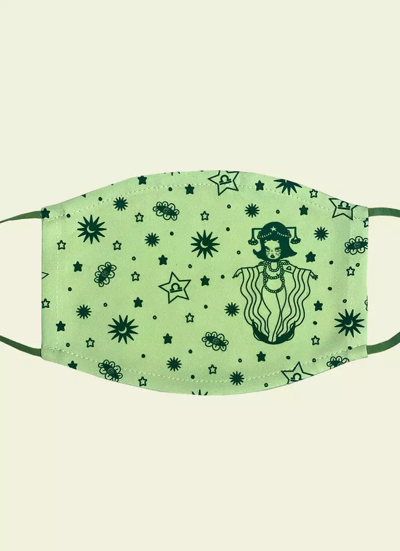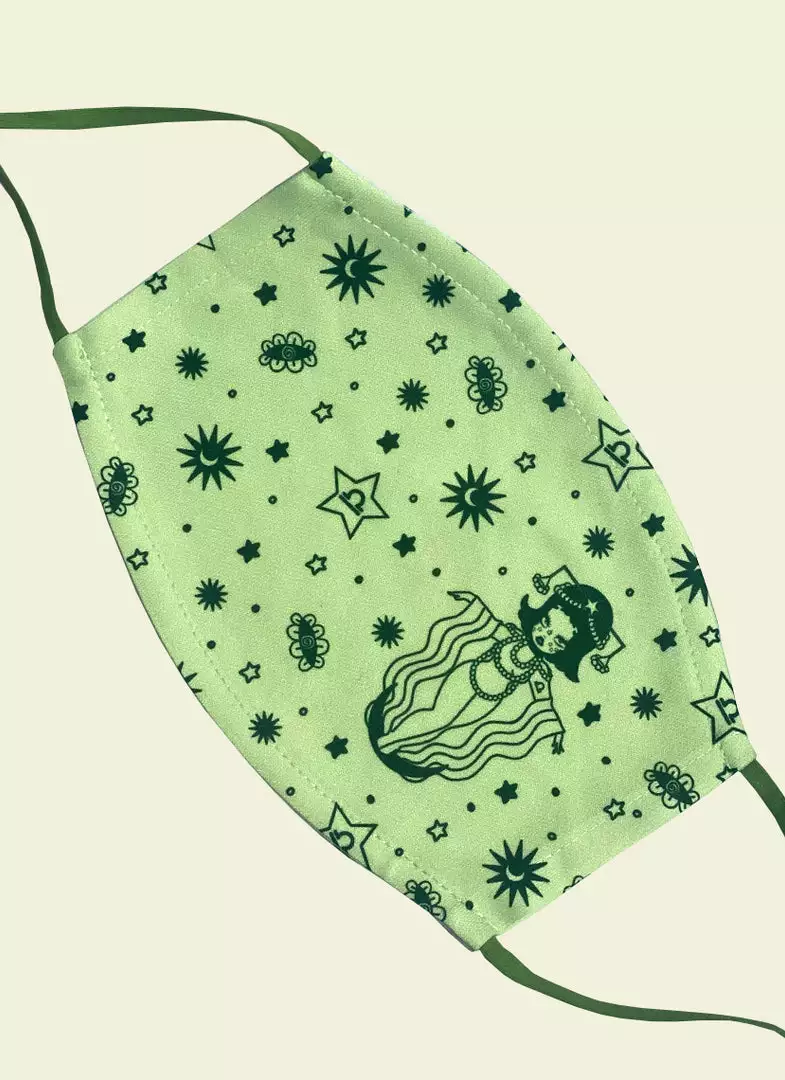 This soft face mask features original Valfré Zodiac artwork. Made of stretchy polyester material and features adjustable straps. One size fits most.