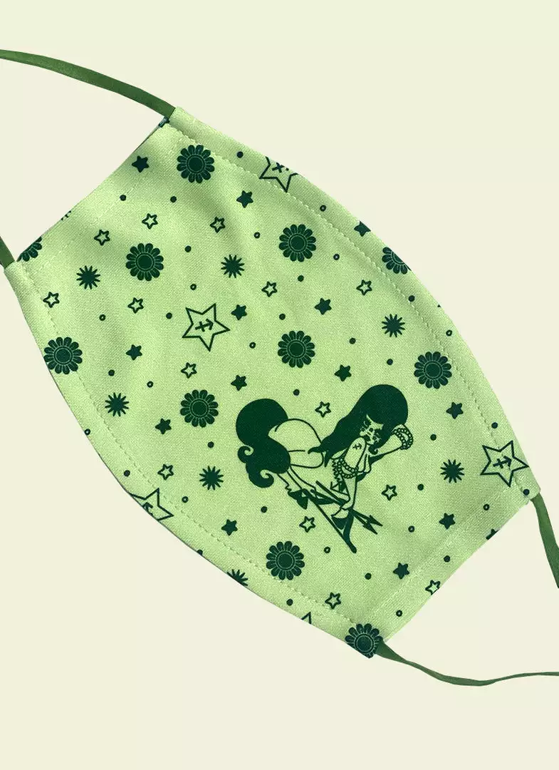 This soft face mask features original Valfré Zodiac artwork. Made of stretchy polyester material and features adjustable straps. One size fits most.