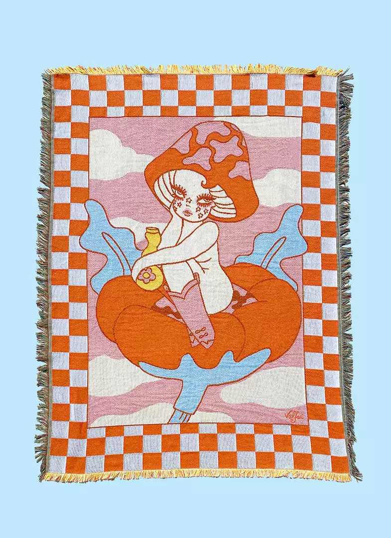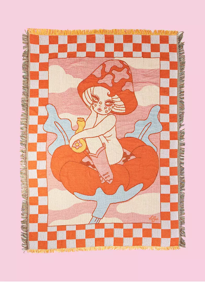 This large woven blanket features original Valfré artwork. Drape it across your bed/couch, hang it in your living space, or bring it on a picnic.