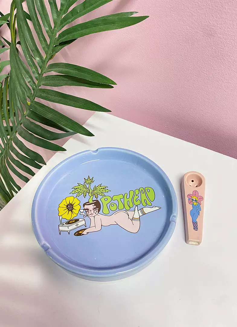 This handmade ceramic ash tray features original Valfré artwork. Each ash tray is unique, so colors and textures will slightly differ from piece to piece.