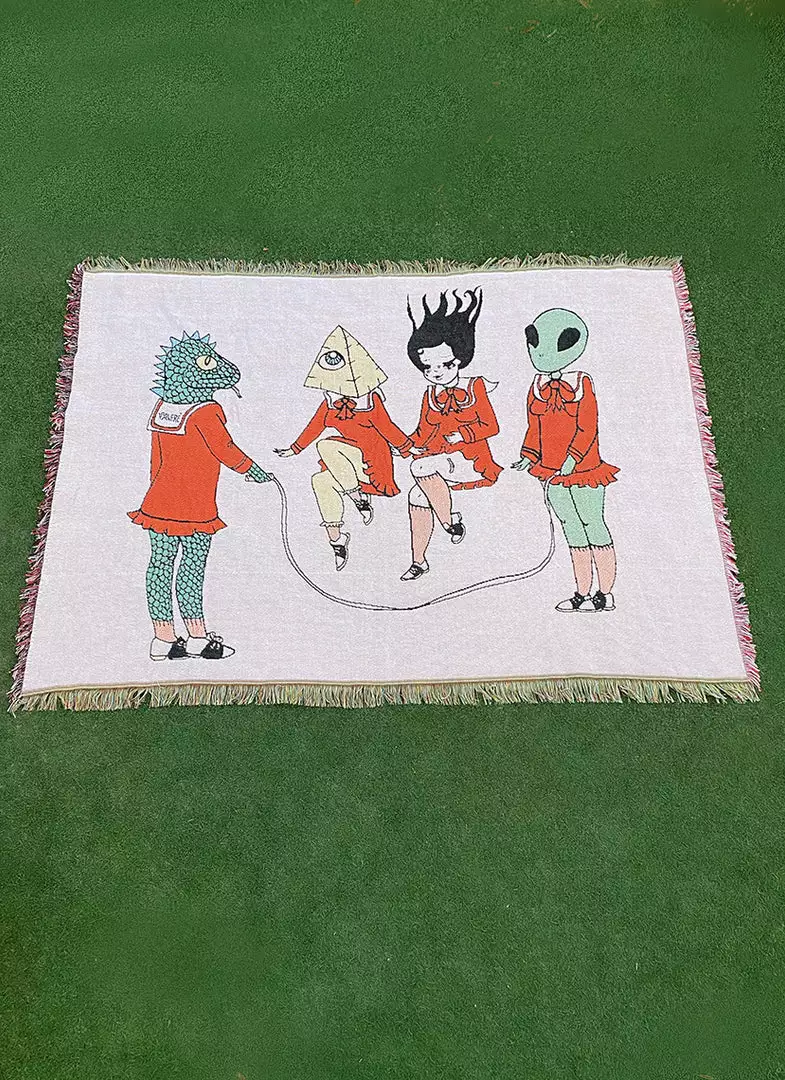 This large woven blanket features original Valfré artwork. Drape it across your bed/couch, hang it in your living space, or bring it to the beach.Â